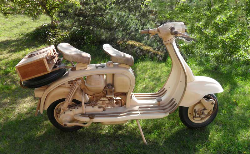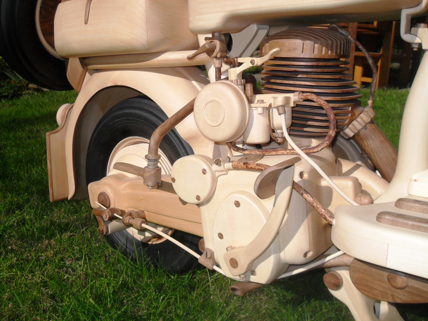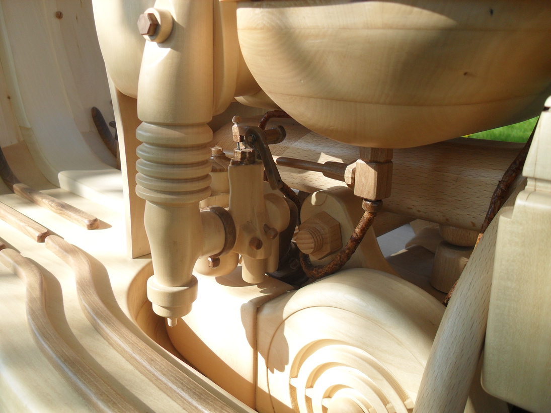 Riproduzione in scala 1:1, in legno di noce nazionale, il motore in cirmolo.