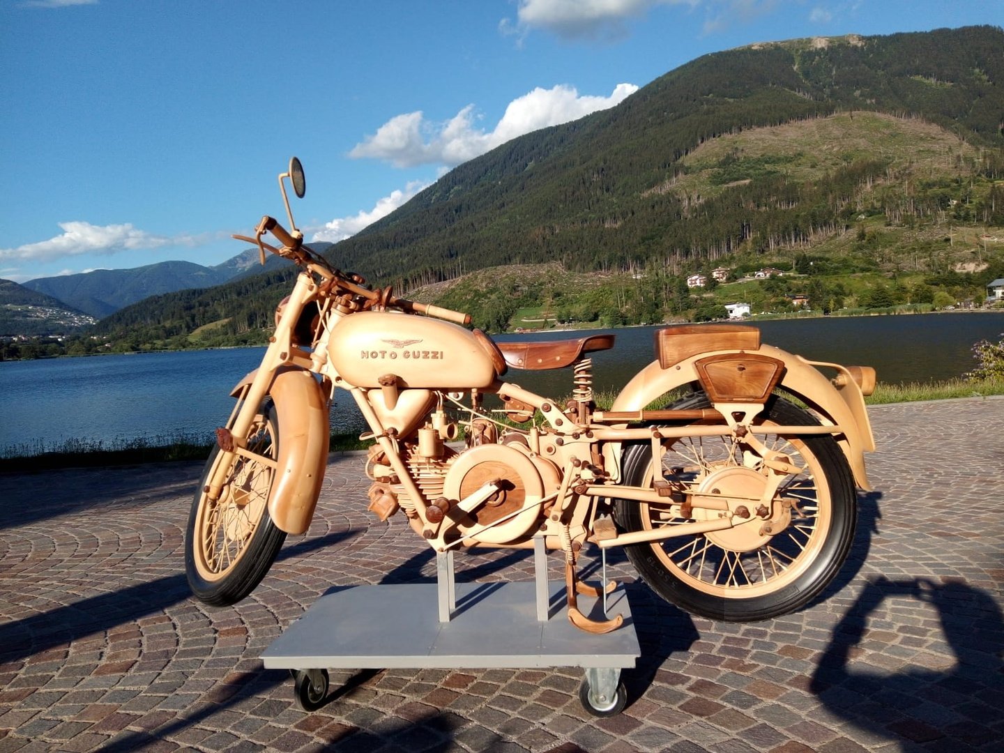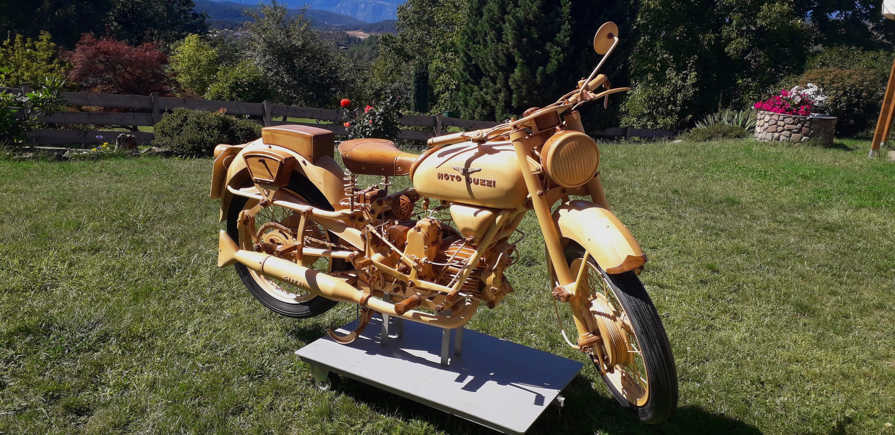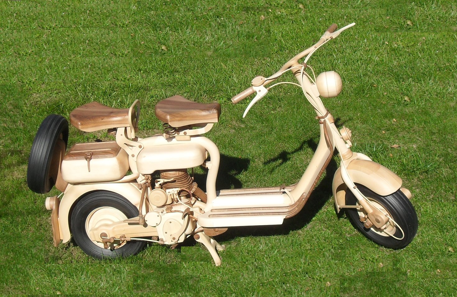 Riproduzione in scala 1:1, in legno di noce nazionale, il motore in cirmolo.